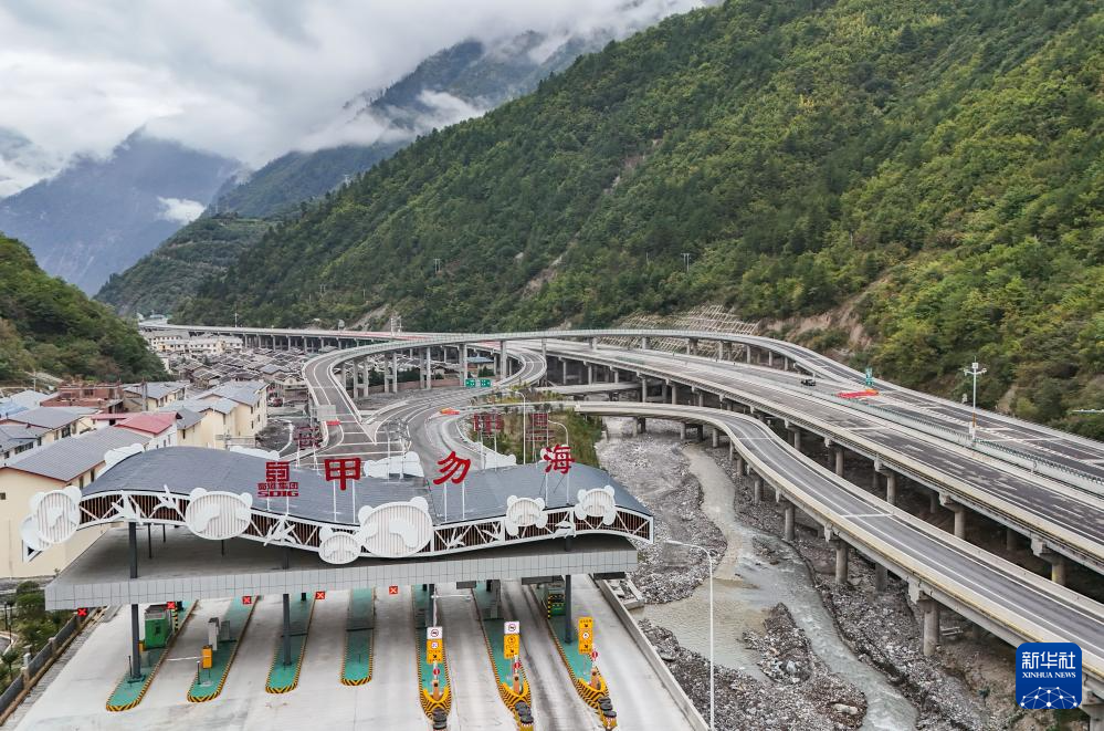 這是10月11日拍攝的正在建設(shè)中的九寨溝—綿陽(yáng)高速公路甲勿海收費(fèi)站(無(wú)人機(jī)照片)。九綿高速開(kāi)通后,從成都至九寨溝縣的時(shí)間將從原來(lái)的8小時(shí)縮短至4小時(shí)。新華社記者 王曦 攝