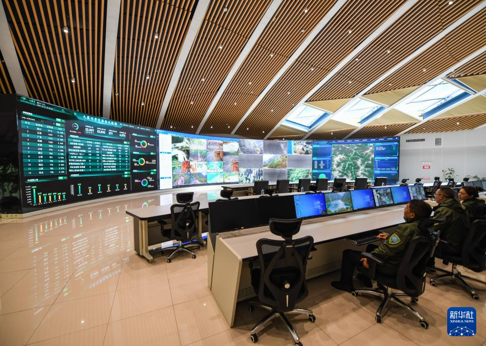 這是10月10日在九寨溝景區(qū)指揮中心拍攝的智慧景區(qū)系統(tǒng)。新華社記者 王曦 攝