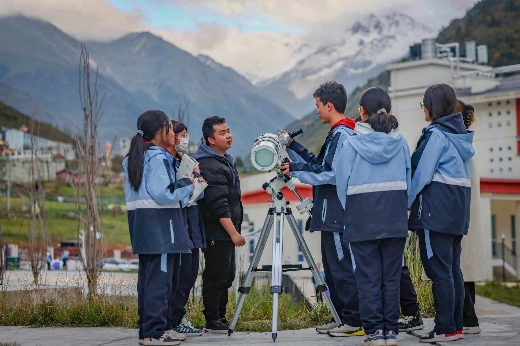 走出教學樓,正趕上天文社戶外活動。16歲的高二學生加央巴姆,盯著一臺折射式望遠鏡的目鏡凝視遠方,神色平靜。記者好奇,湊上去看了一眼:鏡頭里有雪山,更有雪山外無垠的天空。(四川在線記者 侯沖 吳憂 寧蕖 陳宇 甘孜觀察 洛絨尼瑪 康定市融媒體中心 李強)