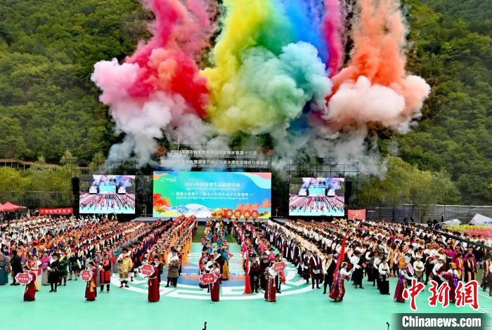 2024年四川省生態(tài)旅游活動(dòng)暨黑水縣第十二屆冰川彩林生態(tài)文化旅游季18日在四川省阿壩州黑水縣開(kāi)幕,圖為開(kāi)幕式現(xiàn)場(chǎng)。 安源 攝