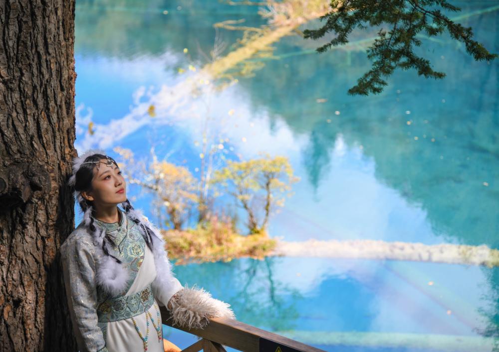 江蘇林女士的新婚蜜月之行便是來到九寨溝,她特意租了傳統(tǒng)藏族服飾、化上了特色妝容,站在五花海的棧道上,身后是碧藍(lán)湖水,身側(cè)是林影婆娑?!霸谶@么美的景色之下穿上民族服裝,我想拍出來的照片一定很美!”