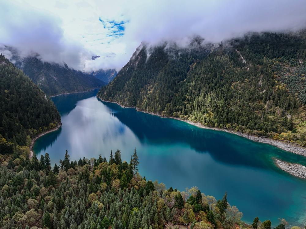 從高空中俯瞰,樹正溝、日則溝和則查洼溝3條主溝呈不規(guī)則的“Y”字形躺臥于九寨溝起伏的峰巒之間。數(shù)以萬計(jì)的游客散落在綿延40多公里的狹長溝谷內(nèi),卻并不顯得擁擠。