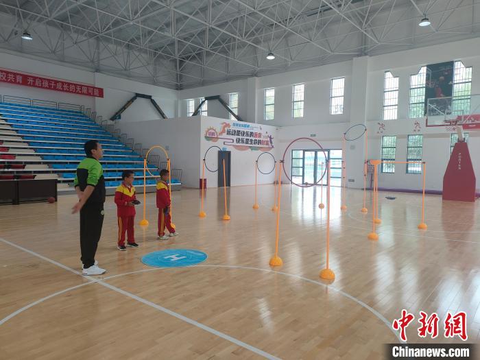10月14日,德欽縣第二小學(xué)學(xué)生在室內(nèi)體育館內(nèi)參加無人機(jī)興趣班?!?德欽縣第二小學(xué)供圖)