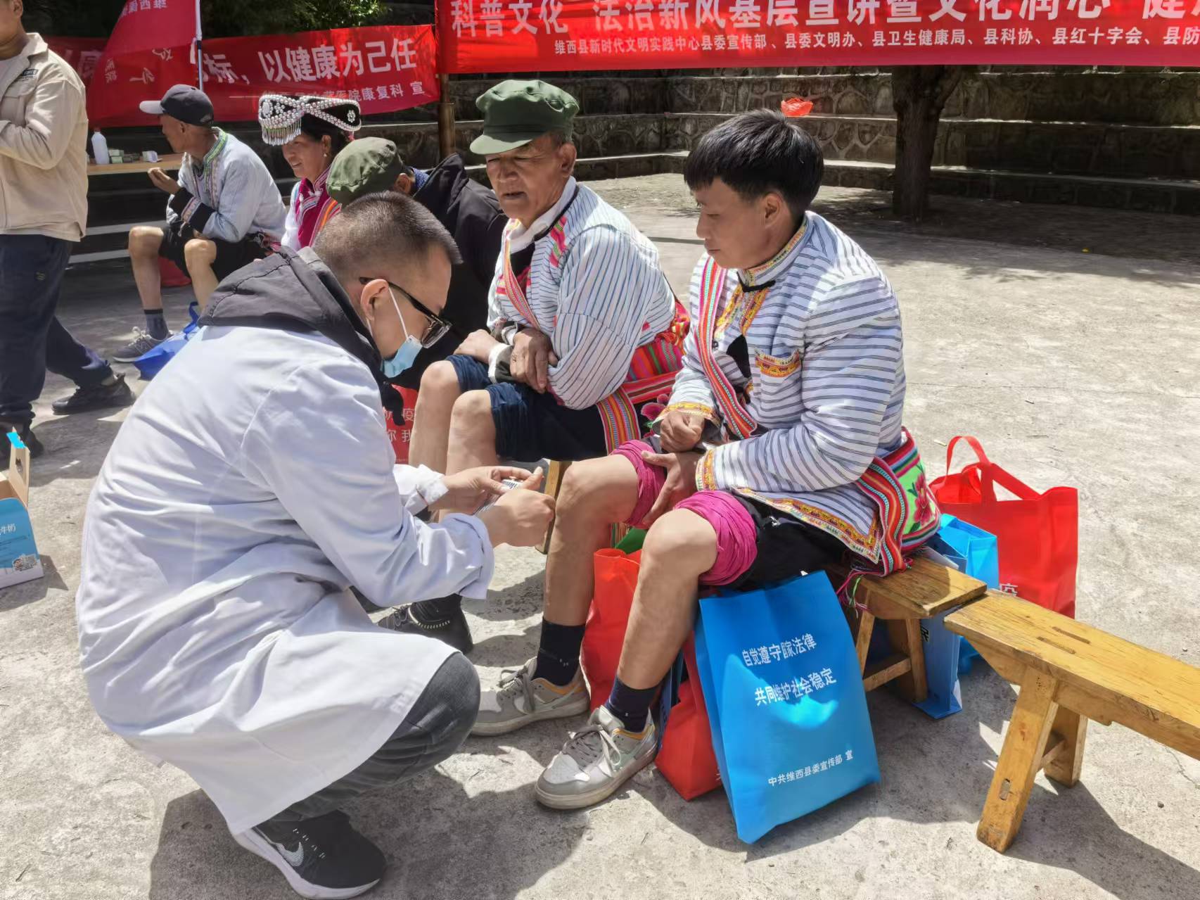今年以來,由上海幫扶專家、縣人民醫(yī)院醫(yī)師組成的維西縣新時(shí)代文明實(shí)踐中心先鋒醫(yī)療隊(duì)多次深入村組開展巡回醫(yī)療志愿服務(wù)活動(dòng),為群眾提供心電圖等常規(guī)體檢以及多發(fā)病、慢性病等病癥現(xiàn)場(chǎng)診療和咨詢服務(wù),還免費(fèi)向群眾發(fā)放藥品,切實(shí)解決了農(nóng)村群眾看病就醫(yī)難題。圖為上海專家志愿者向傈僳族群眾免費(fèi)發(fā)放藥品。