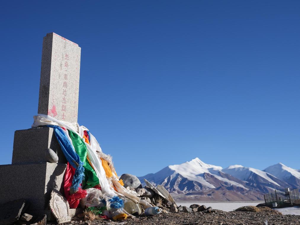 這是可可西里無人區(qū)腹地太陽湖湖邊索南達杰烈士紀念碑,索南達杰犧牲在太陽湖,他的骨灰也撒在太陽湖(攝于2025年1月14日)。新華社發(fā)