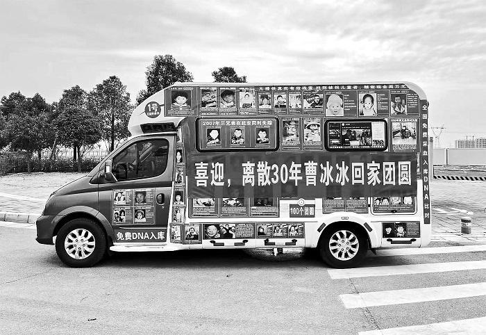 白天,車輪在公路上飛馳,載著尋親家庭的希望;夜晚,疲憊的鼾聲響起,車身上的照片,在月色中泛著微光。