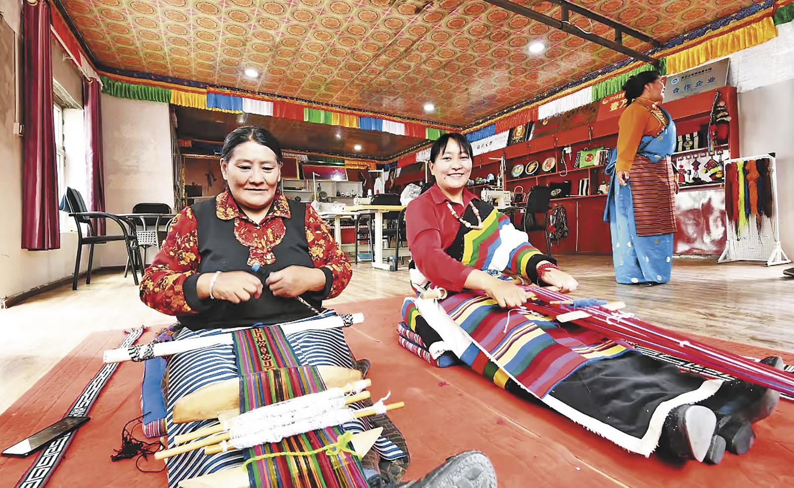 產(chǎn)業(yè)協(xié)作的熱潮之下,文化的根脈正在這片土地深扎。走進崗巴布民族手工藝品合作社,氆氌的經(jīng)緯間流淌著吐蕃時期的紋樣,掐絲唐卡的金線里纏繞著藏傳佛教的智慧,而講解這些工藝品的,是能用流利漢語交流的藏族社員三木吉。
