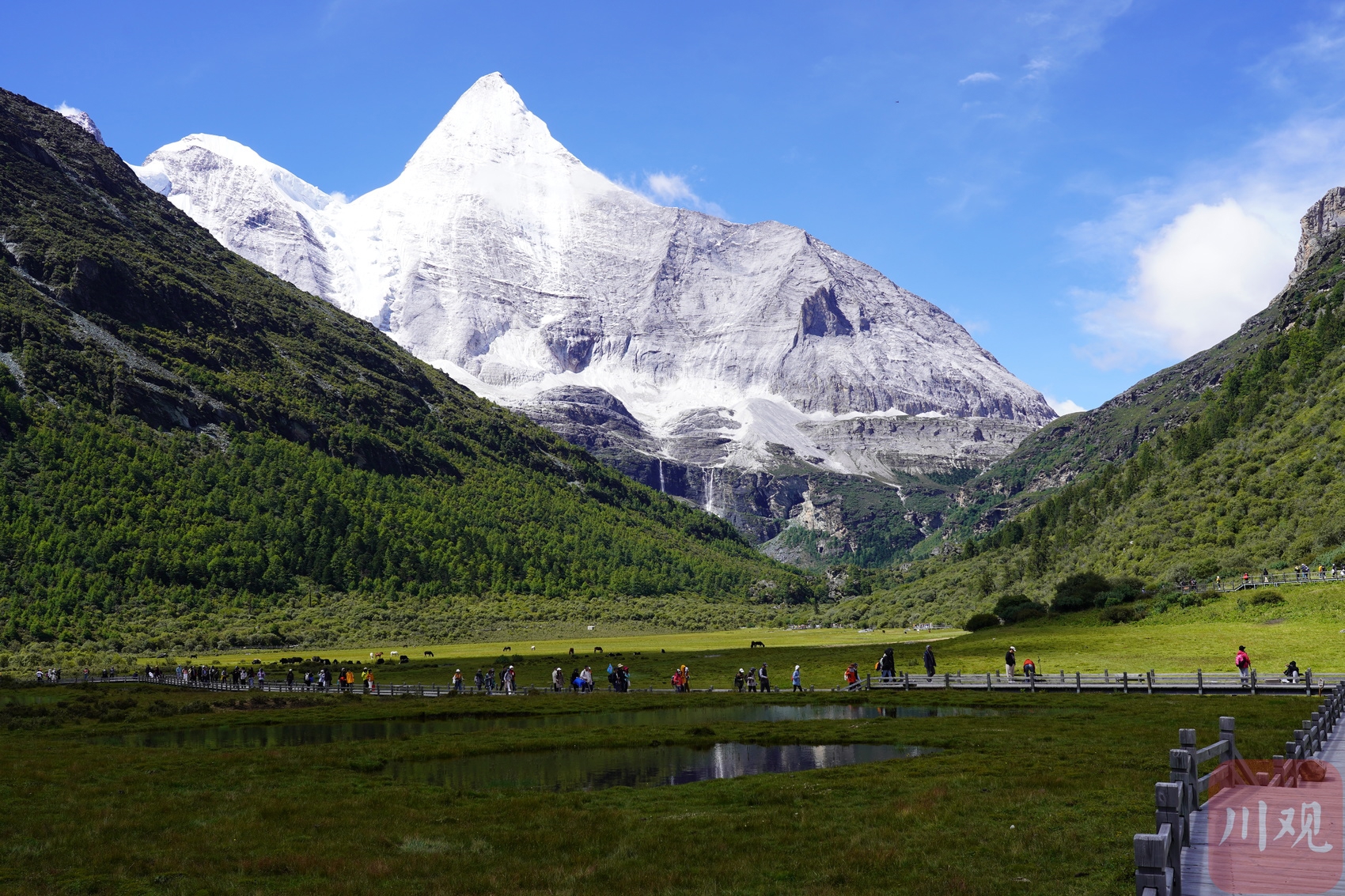 9月3日,四川甘孜州稻城亞丁景區(qū)迎來(lái)初秋美景。湛藍(lán)天空下,仙乃日、央邁勇、夏諾多吉三座雪山清晰可見(jiàn),積雪覆蓋的山峰在陽(yáng)光下熠熠生輝,與初染秋色的山林相映成趣。