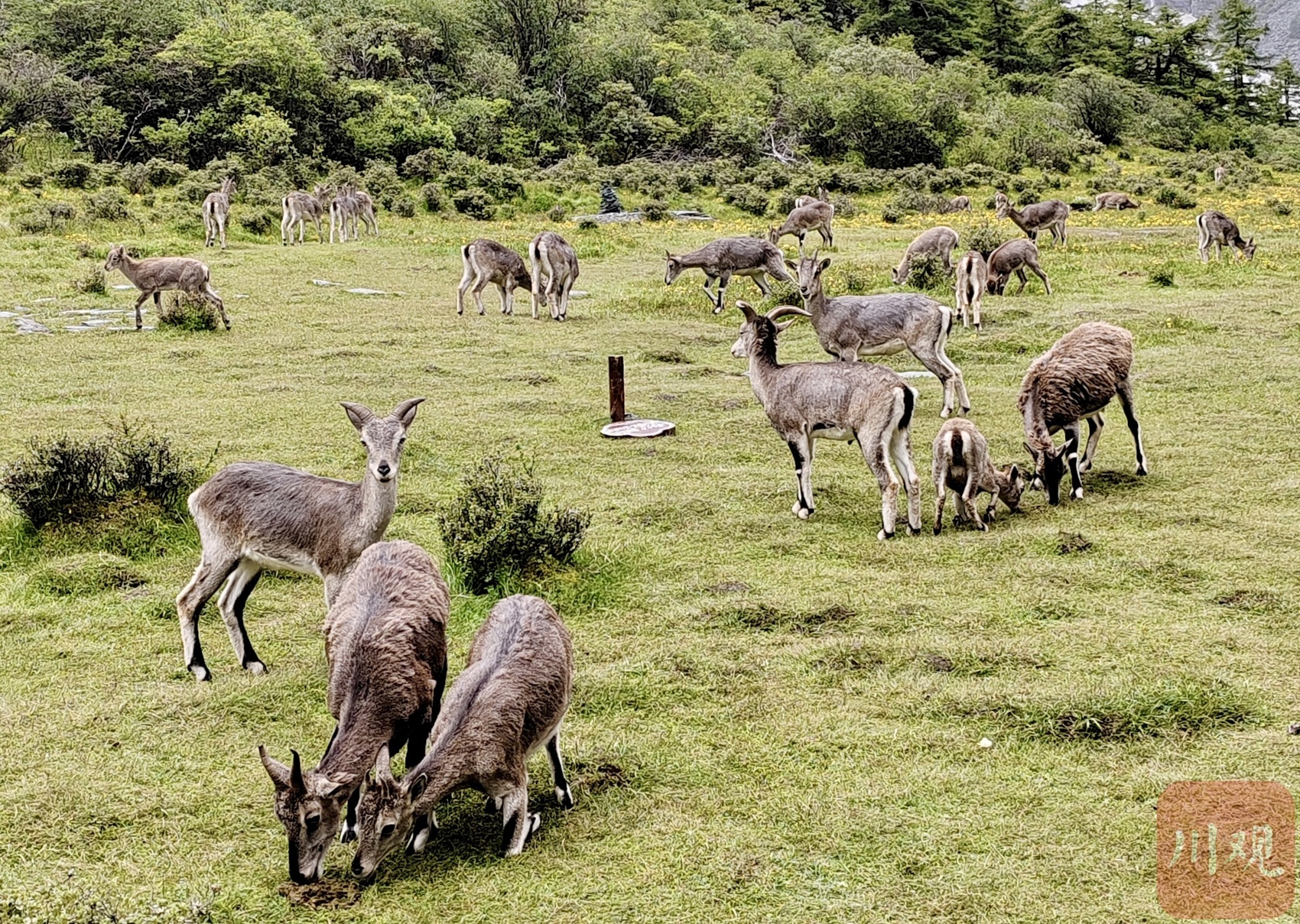 稻城亞丁景區(qū)內(nèi),一群巖羊悠然自得。攝影 格絨多燈