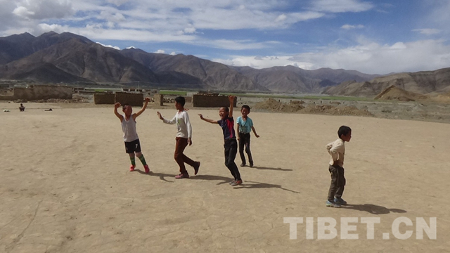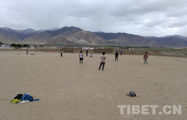 照片里個(gè)子最高的就是夏雜小小足球隊(duì)的隊(duì)長(zhǎng)——貢嘎扎西,本以為他會(huì)是足球隊(duì)的前鋒,誰(shuí)知他卻是防守的中堅(jiān)力量——司職后衛(wèi)。今天他可解圍了不少威脅球。前排中間這個(gè)剛剛掉了右邊門(mén)牙的少年名叫多吉普拉,“別看我牙都沒(méi)長(zhǎng)齊,但我是前鋒”。在剛剛結(jié)束的這場(chǎng)夏雜村足球賽中獨(dú)中兩元,他就是夏雜村足球隊(duì)未來(lái)的“C羅”。這里——4100米海拔的“魔鬼主場(chǎng)”就是他們的主場(chǎng)。