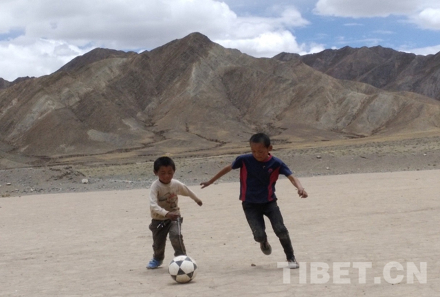 守門(mén)員開(kāi)球后,他們會(huì)跟在球的后面拼命奔跑;為了爭(zhēng)奪球權(quán),他們也會(huì)有產(chǎn)生激烈的身體對(duì)抗,哪怕拼搶不過(guò)也毫無(wú)畏懼;球技雖然暫時(shí)還不精良,但是每一個(gè)都不服輸;進(jìn)了球之后,他們開(kāi)心地高舉雙臂歡呼雀躍。一顆小小的足球,帶動(dòng)的是他們拼搏的心;一顆小小的足球,觸發(fā)他們對(duì)外面世界的渴望和憧憬。他們最大的夢(mèng)想就是要做“C羅”“梅西”“內(nèi)馬爾”,當(dāng)今足壇的球星在他們口中如數(shù)家珍,就連他們目前僅有的地理知識(shí)也來(lái)源于足球。因?yàn)樽约合矚g的球星而知道了葡萄牙、阿根廷、巴西這些遙遠(yuǎn)的國(guó)度,足球成了他們放眼看世界的一個(gè)窗口。足球在這片青藏高原熱土上被這幫小球迷深深地?zé)釔?ài)著。