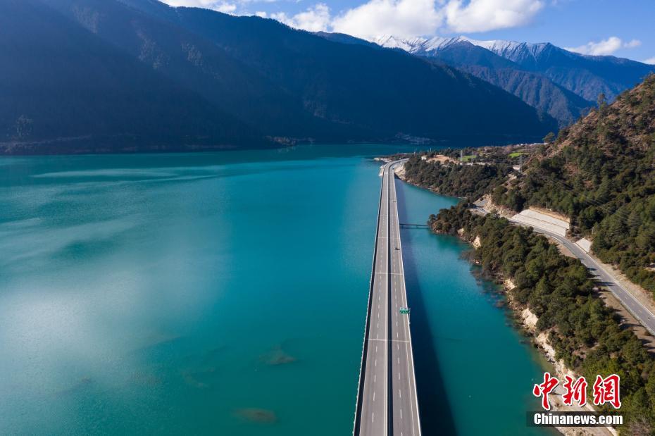作為西藏目前“顏值最高”的高等級公路,拉林高等級公路在林芝市境內的多布特大橋路段又被譽為西藏“最美水上公路”,公路橫跨湛藍的水面,顏值爆表。 何蓬磊 攝
