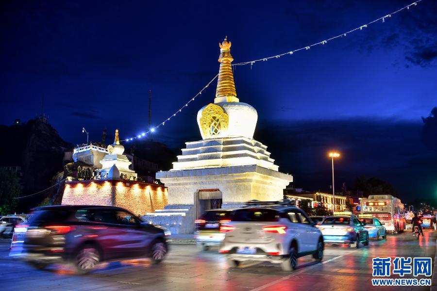汽車行駛在拉薩街頭(2019年7月4日攝)。新華社記者 李鑫 攝