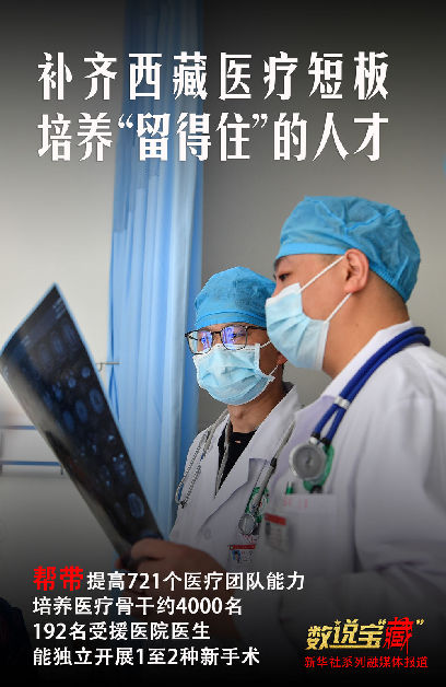 醫(yī)療人才“組團(tuán)式”援藏實(shí)施以來,共幫帶721個醫(yī)療團(tuán)隊(duì)、2031名本地醫(yī)務(wù)人員、培養(yǎng)醫(yī)療骨干約4000名,已有192名受援醫(yī)院的醫(yī)生能獨(dú)立開展1種至2種新手術(shù),實(shí)現(xiàn)了400多種較大疾病不出藏,大多數(shù)“中病”不出市(地)就能得到治療。