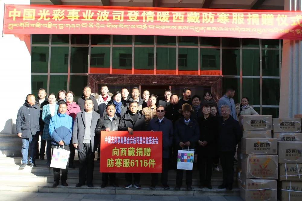 2021年1月8日,“中國光彩事業(yè)波司登防寒服情暖西藏”捐贈(zèng)儀式在拉薩隆重舉行。西藏自治區(qū)黨委統(tǒng)戰(zhàn)部副部長、西藏自治區(qū)工商聯(lián)黨組書記王念東,波司登集團(tuán)黨委副書記、波司登公益基金會(huì)理事長朱鈞,西藏自治區(qū)工商聯(lián)黨組成員、副主席陸紅軍,西藏自治區(qū)工商聯(lián)黨組成員、副主席、秘書長、西藏自治區(qū)光彩事業(yè)促進(jìn)會(huì)秘書長張蓉出席了捐贈(zèng)儀式。
