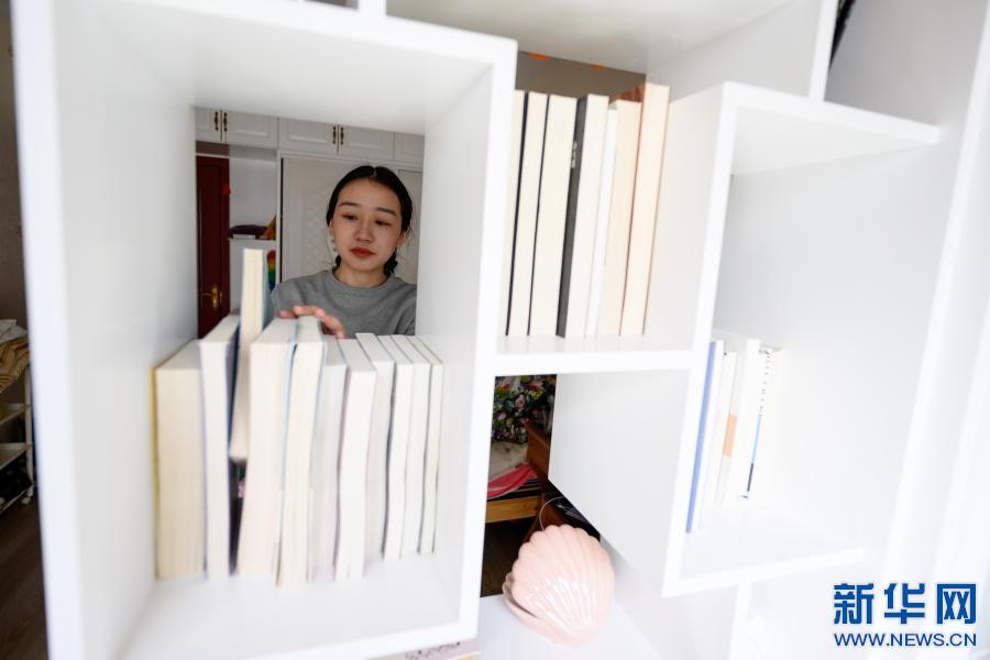 2月10日,在西藏自治區(qū)山南市乃東區(qū),格央在家中整理書(shū)架。書(shū)架上擺滿了她購(gòu)買(mǎi)的各類文學(xué)書(shū)籍。新華社記者 劉金海 攝