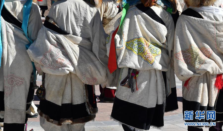 藏北當(dāng)雄縣幾名男子的羊皮袍子上的美麗花紋(2月12日攝)新華社記者 覺果 攝