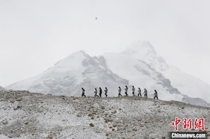 珠峰邊境派出所民警們在珠峰核心區(qū)域開展巡邏。彭維熙 攝