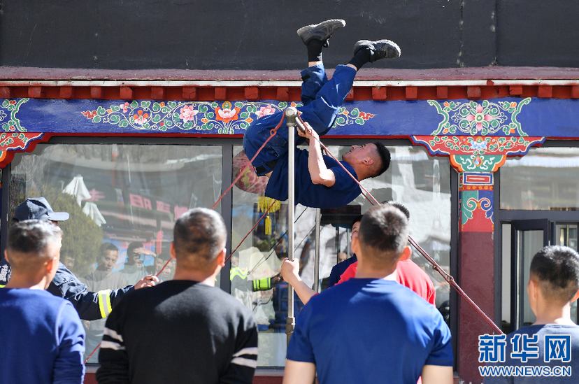 布達(dá)拉宮消防救援大隊(duì)隊(duì)員開展例行體能測(cè)試(3月4日攝)。新華社記者 孫瑞博 攝