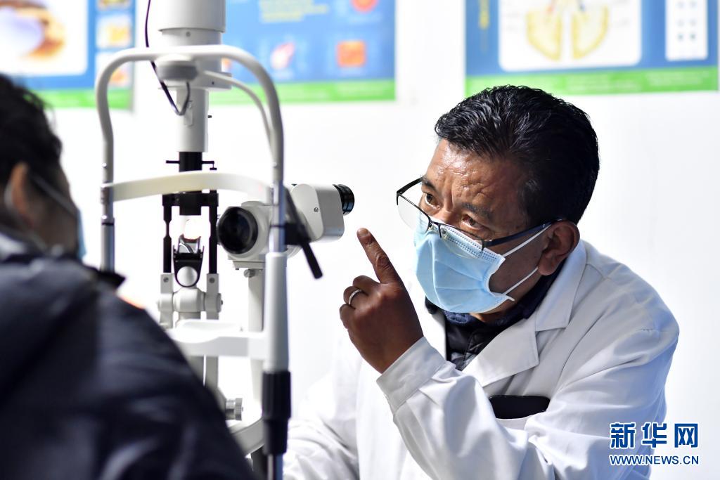 3月24日,西藏拉薩光明眼科康復(fù)診療院醫(yī)生對(duì)白內(nèi)障患者進(jìn)行檢查。新華社記者 覺果 攝