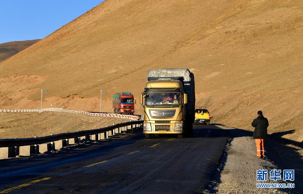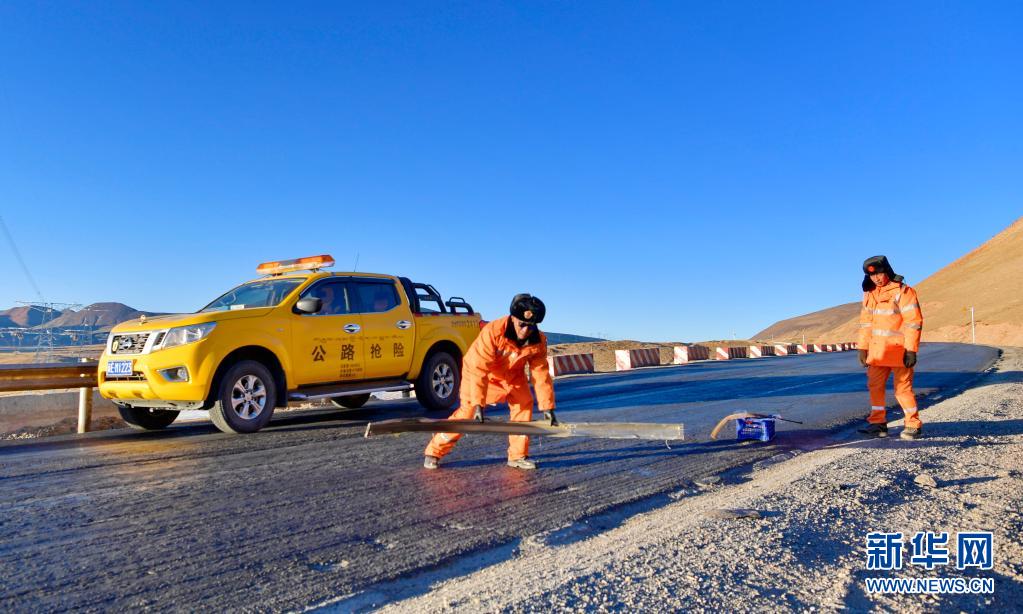 安多公路養(yǎng)護段工作人員在清理國道109上的垃圾(1月13日攝)。新華社記者 張汝鋒 攝
