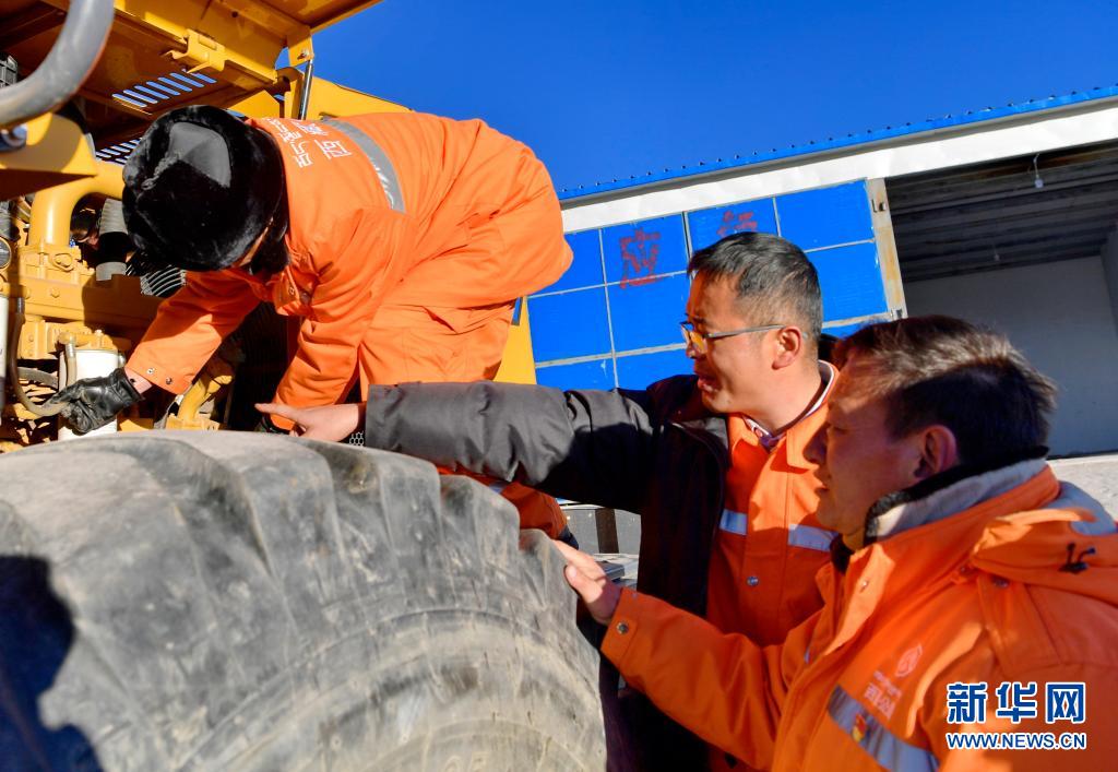 安多公路養(yǎng)護段工作人員在檢修施工機械(1月13日攝)。新華社記者 張汝鋒 攝