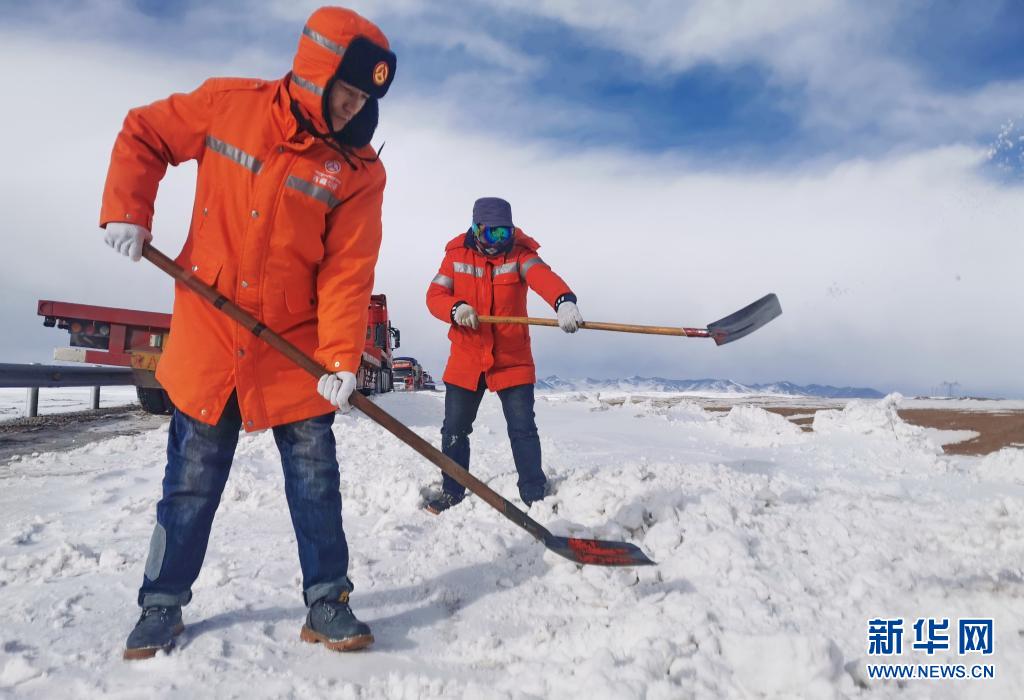 一夜銀裝素裹,唐古拉成了茫茫雪原。巴布和工友們緊急前往唐古拉鏟冰除雪。