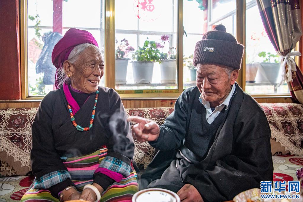 舊社會,昂旺尼瑪住的是木頭搭建的簡易棚子,夏天漏雨,冬天漏風。如今,昂旺尼瑪住在藏式小別墅,享受著四世同堂的天倫之樂。