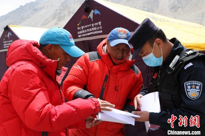 同時(shí),民警在珠峰大本營(yíng)為登山隊(duì)員宣傳國(guó)家移民管理機(jī)構(gòu)12367服務(wù)平臺(tái),并認(rèn)真傾聽中外出入境人員意見建議,答疑解惑,不斷提升移民管理服務(wù)水平的積極態(tài)度和專業(yè)精神,進(jìn)一步提升移民管理工作“放管服”水平,便利登山隊(duì)獲取更多移民管理信息、享受便捷政務(wù)服務(wù)。