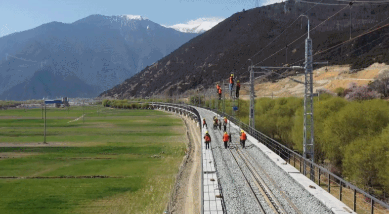 2021年4月26日晚21時29分,西藏首條電氣化鐵路、連接拉薩到林芝的拉林鐵路全線接觸網(wǎng)成功送電。這標志著拉林鐵路電氣化建設基本完成,為鐵路今年6月30日開通奠定了堅實基礎。