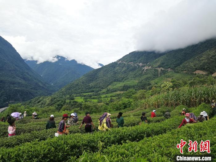 圖為墨脫縣德興鄉(xiāng)易貢白村村民在茶園采茶。墨脫縣委宣傳部供圖