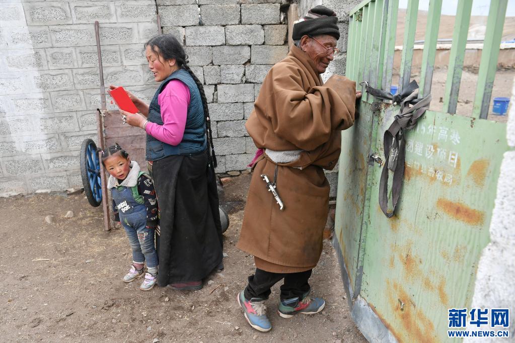 索朗多杰在關(guān)自家牲圈的門(4月15日攝)。新華社記者 孫瑞博 攝