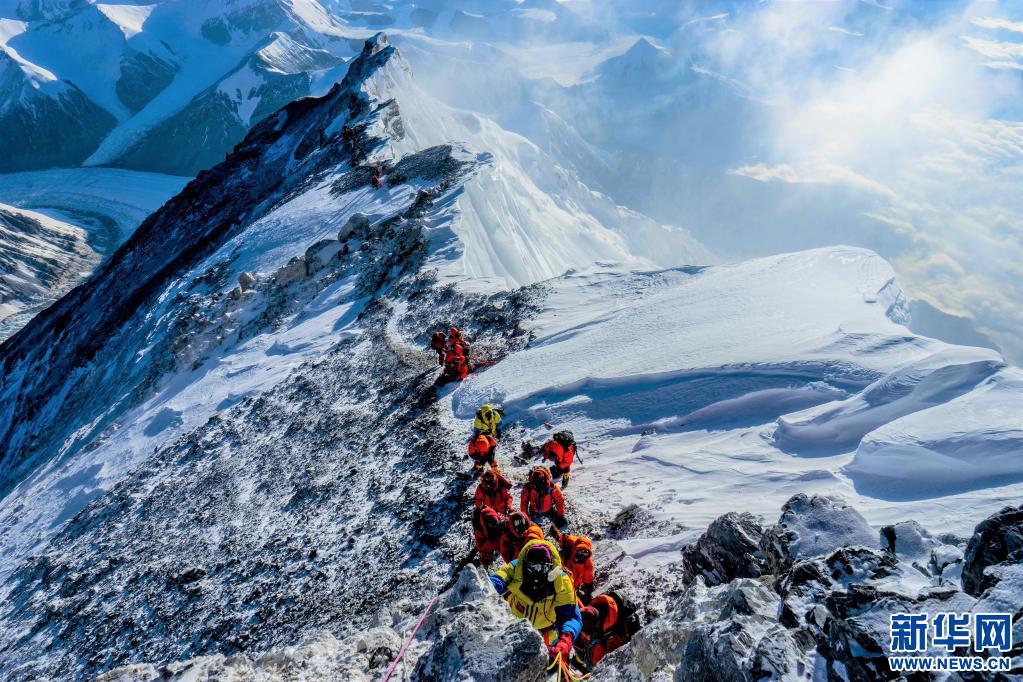 2019年5月24日,西藏拉薩喜馬拉雅登山向導學校的向導們在攀登珠峰。新華社發(fā)(次仁扎西攝)