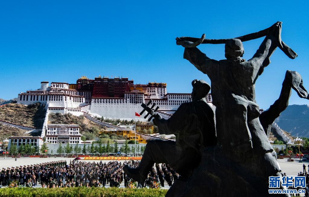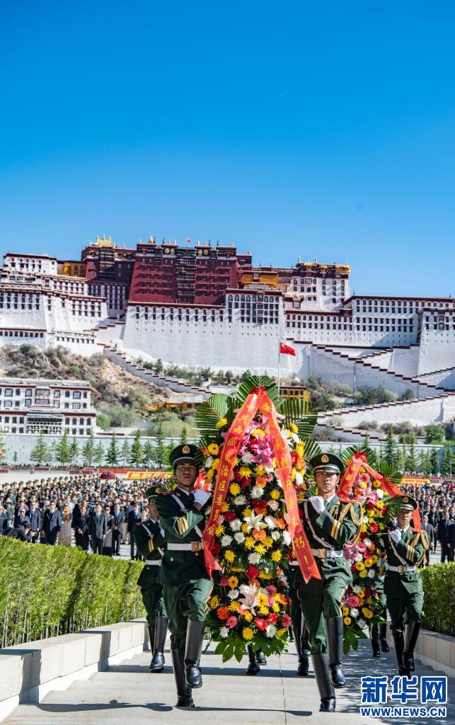 5月23日,西藏各族各界群眾一千余人在西藏和平解放紀(jì)念碑前,向革命先烈敬獻(xiàn)花籃、鮮花,深切緬懷為西藏和平解放事業(yè)英勇犧牲的革命先烈。