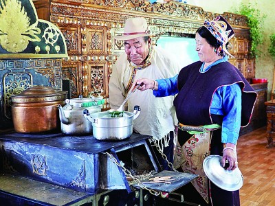 推開格桑曲珍家的院門,迎面映入眼簾的是坐北朝南、鑲嵌六扇大落地窗的藏式二層紅頂小樓,收拾得干凈整潔的院落透露出主人一家的勤勞。院子西邊的獨立衛(wèi)生間里,白底黃花的瓷磚鋪滿地面和墻面,太陽能熱水器、上下水衛(wèi)浴設施一應俱全。院子東南角上占地十余平方米的廚房里,配齊了現(xiàn)代化的抽油煙機和電子灶具。
