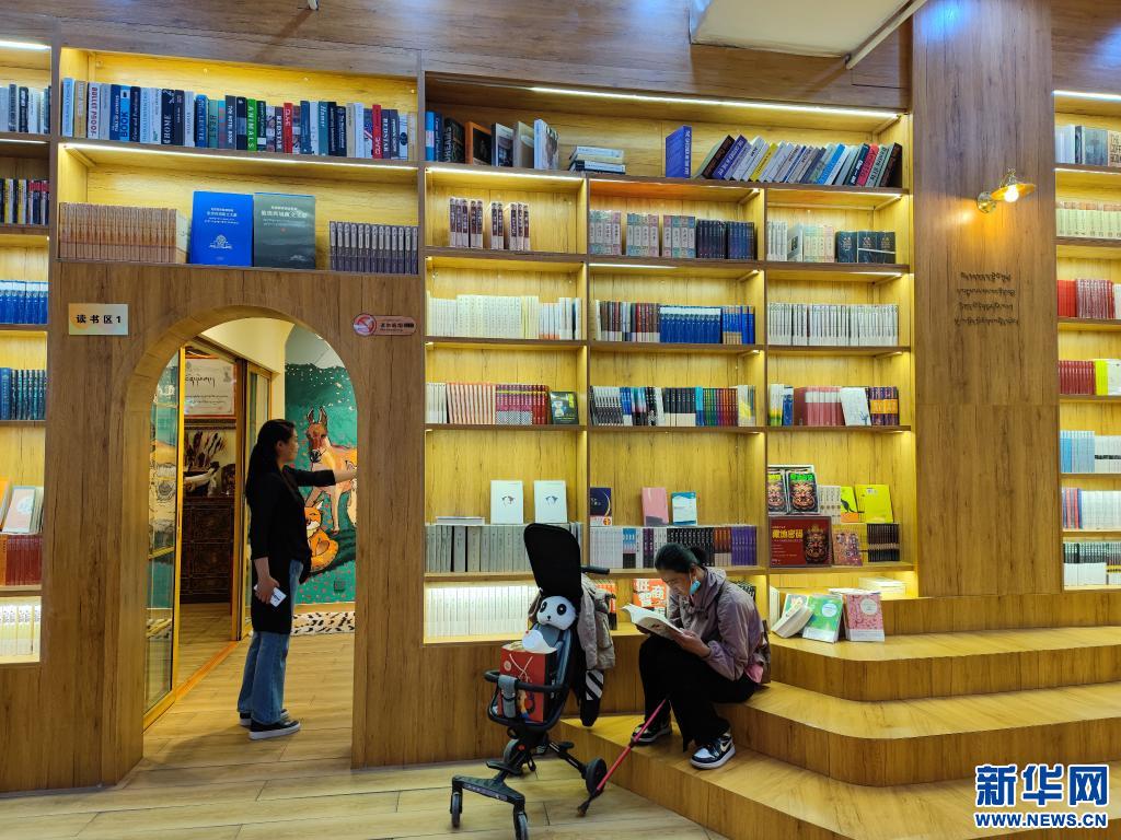 “閱讀與人生相伴,書香與夢想齊飛”。走在拉薩市宗角祿康公園北側(cè),這副對(duì)聯(lián)映入眼簾。走進(jìn)書屋,只見各式書籍整齊排列,桌子上擺放著報(bào)紙和雜志。61歲的貢嘎挑選了一本藏語讀物,坐在靠門的位置,享受自己的閑暇時(shí)光。
