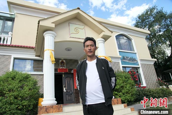 近日,35歲的藏族青年巴登在西藏自治區(qū)林芝市巴宜區(qū)魯朗鎮(zhèn)扎西崗村的家里接受中新社記者采訪。中新社記者 陳小愿 攝