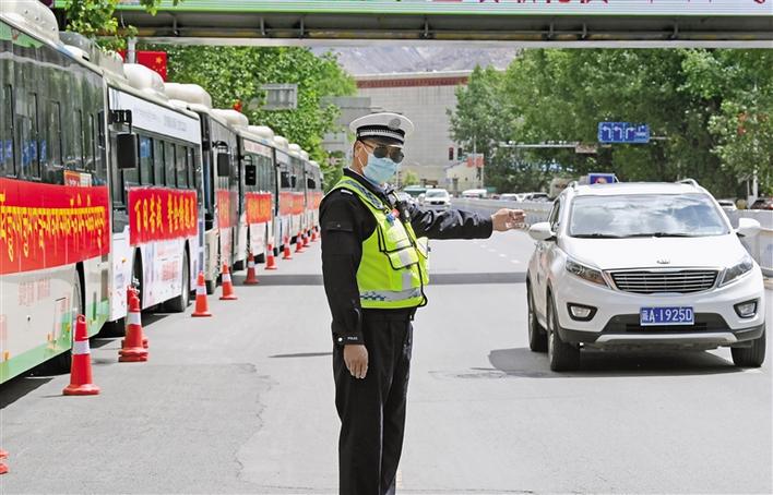 圖為交警在考點(diǎn)外疏導(dǎo)交通秩序。記者 洛桑 次旺 次仁平措 攝