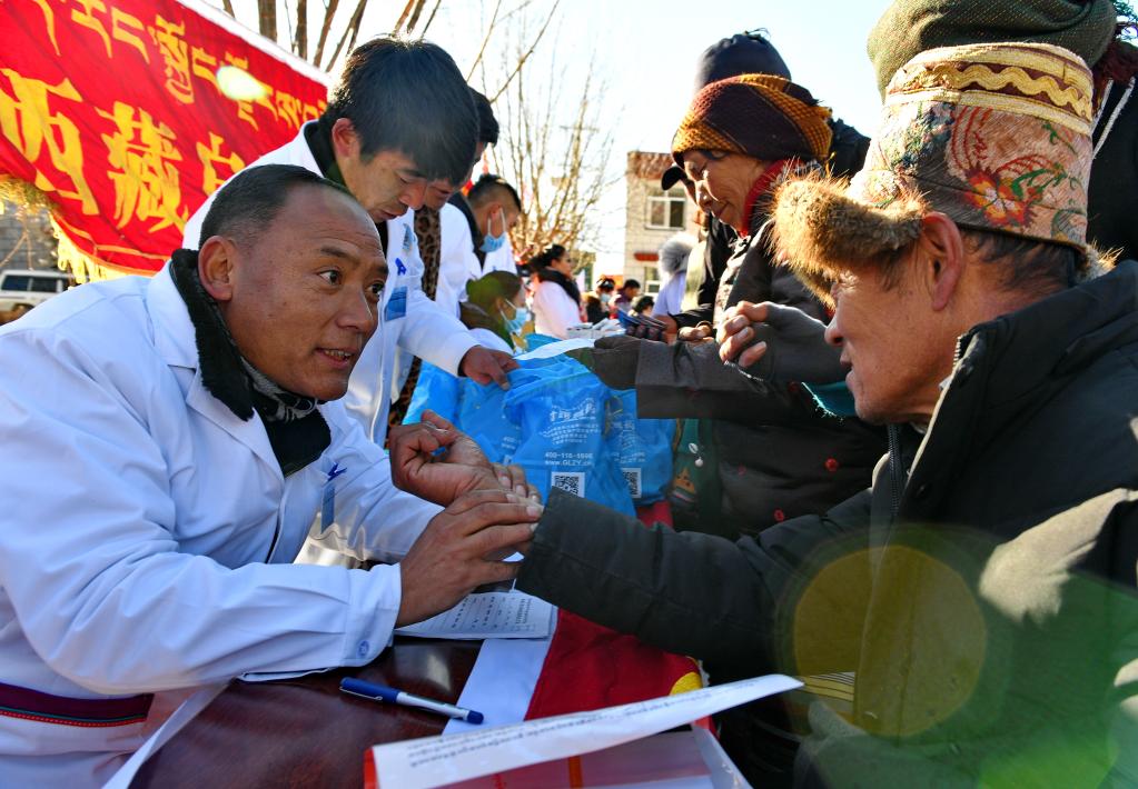 西藏自治區(qū)藏醫(yī)院的醫(yī)生在為群眾義診(2019年1月17日攝)新華社記者 張汝鋒 攝