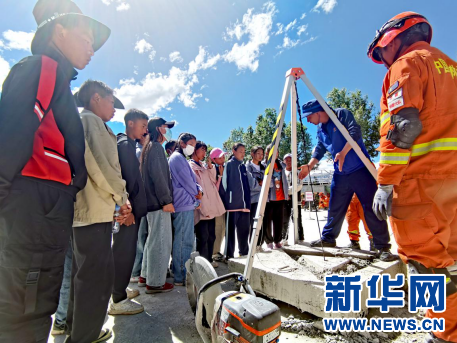 西藏自治區(qū)兒童福利院的孩子們到西藏森林消防總隊(duì)訓(xùn)練大隊(duì)觀摩地震救援展示(6月14日攝)。甄小龍攝