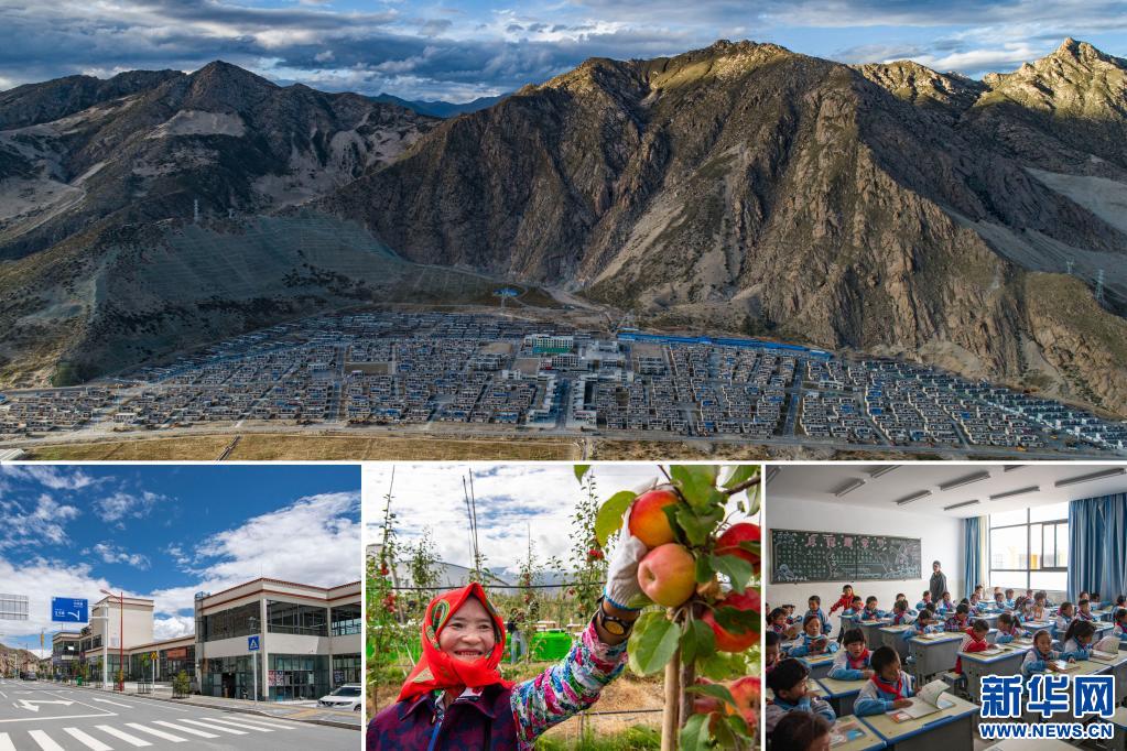 拼版照片:上:位于山南市貢嘎縣的森布日搬遷安置點。新華社記者 孫非 攝