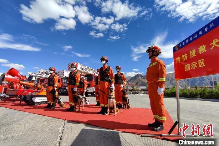 圖為活動現(xiàn)場展示的消防搜救犬。江飛波 攝