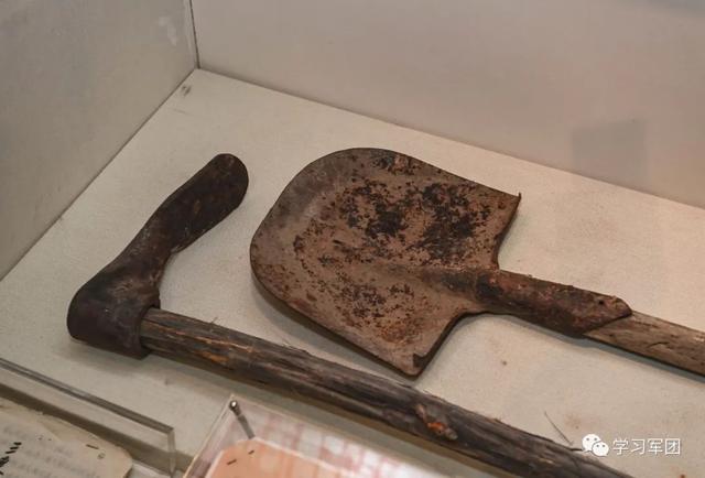 修筑川藏、青藏公路時使用過的鐵鍬和鋤頭。