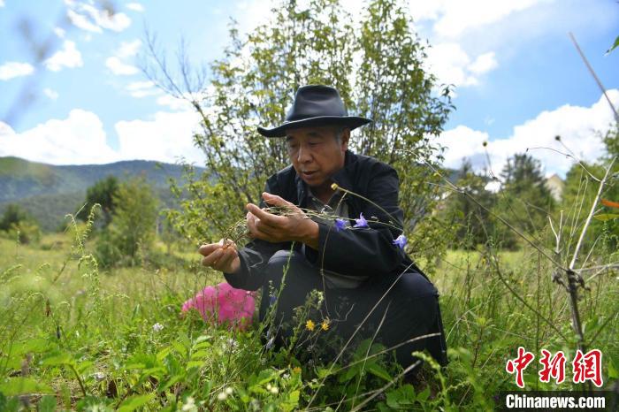 圖為方震東在香格里拉高山植物園觀察植物。劉冉陽 攝