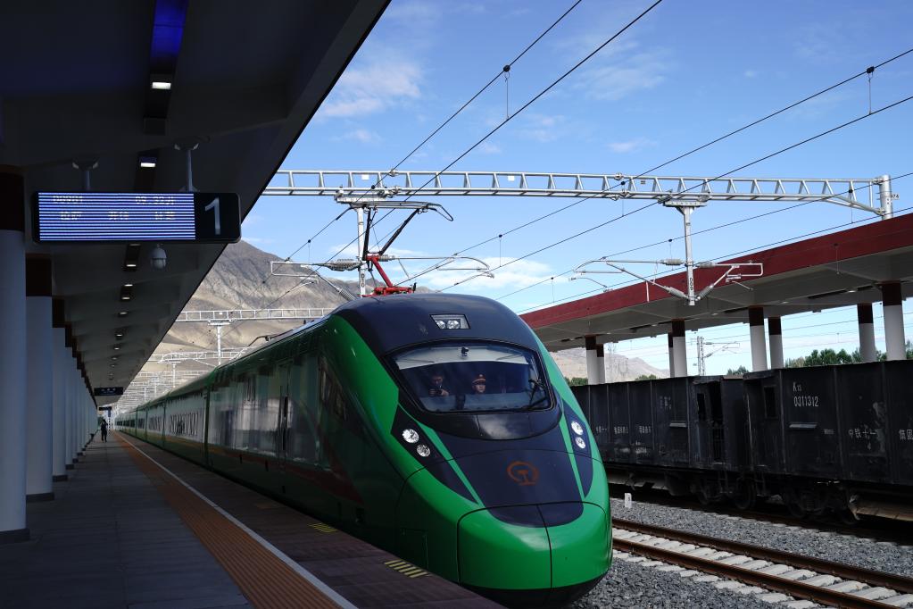 拉林鐵路動(dòng)車組??吭谏侥宪囌荆?021年6月21日攝)。新華社記者劉洪明 攝