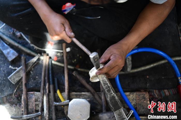 圖為工人正在使用鐵錘塑型。貢嘎來(lái)松 攝