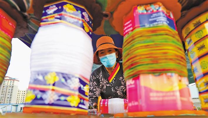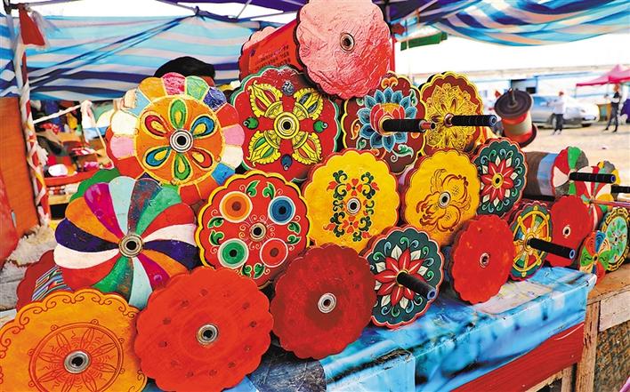 在拉薩河谷售賣風(fēng)箏的攤位中,拉薩風(fēng)箏制作技藝自治區(qū)級(jí)代表性傳承人普窮的生意最紅火,經(jīng)常有客人一買就是幾十只風(fēng)箏。
