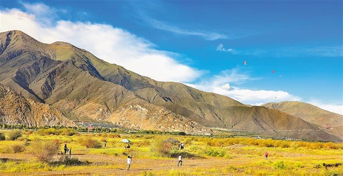 每年金秋時(shí)節(jié),在拉薩城的上空,便會(huì)出現(xiàn)千百只風(fēng)箏漫天飛舞、爭(zhēng)奇斗艷的景觀。在碧藍(lán)的天空下,那些形狀各異、如鷹似燕的風(fēng)箏,時(shí)而高飛、時(shí)而低落、時(shí)而旋轉(zhuǎn)、時(shí)而打斗,一旁觀戰(zhàn)或正在放風(fēng)箏的人仰頭觀看,歡呼聲、嘆息聲、助威聲此起彼伏,很是熱鬧。