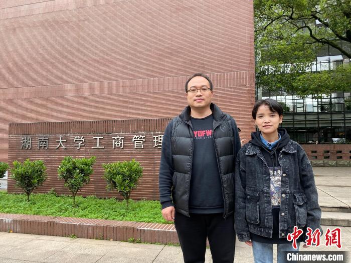 白瑪卓嘎和輔導員、共青團湖南大學工商管理學院委員會書記譚志華合影?!⊥蹶魂?攝