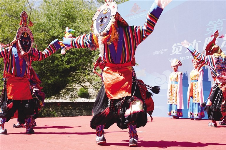 啟動(dòng)儀式結(jié)束后,還舉辦了第六屆覺木隆派藏戲文化旅游節(jié),邀請(qǐng)堆龍德慶區(qū)10支覺木隆藏戲表演隊(duì)表演特色劇目并為他們授牌。堆龍德慶區(qū)委常委、宣傳部部長(zhǎng)楊麗表示,本屆藏戲文化旅游節(jié),廣發(fā)“藏戲達(dá)人召集令”,邀請(qǐng)各派系、各唱腔達(dá)人表演特色劇目選段、共話藏戲,就是希望通過共建文化陣地、共享文化資源、共辦文化活動(dòng)的形式,凝聚合力,充分彰顯藏戲文化魅力,弘揚(yáng)優(yōu)秀傳統(tǒng)民族文化,保護(hù)和傳承藏戲文化遺產(chǎn),推動(dòng)藏戲文化深度發(fā)展?!昂軜s幸能參加此次活動(dòng),那嘎藏戲團(tuán)于1978年成立,那年我13歲,藏戲團(tuán)剛成立我就加入了,因?yàn)槲沂窒矚g藏戲,希望自己能將這種傳統(tǒng)藝術(shù)傳承下去?!苯衲?6歲的安多說。